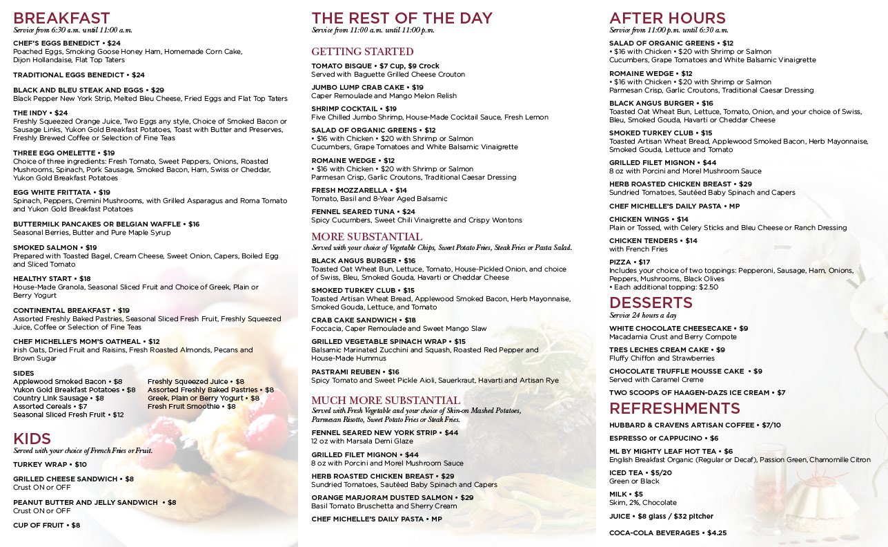 A tri-fold menu following Conrad brand standards and guidelines and color matching for Allegra's press.