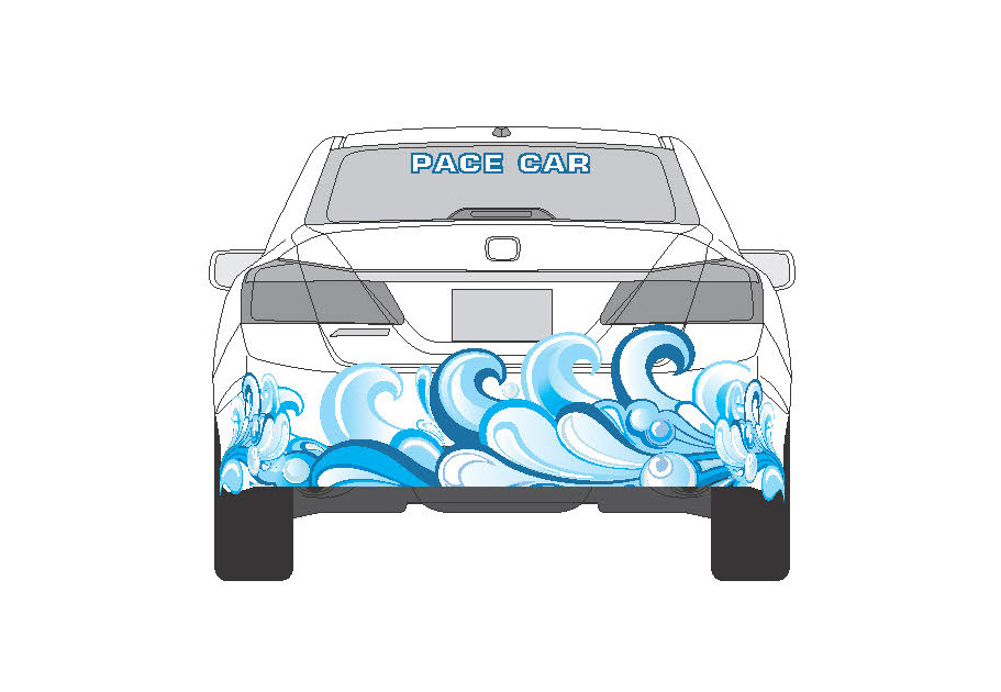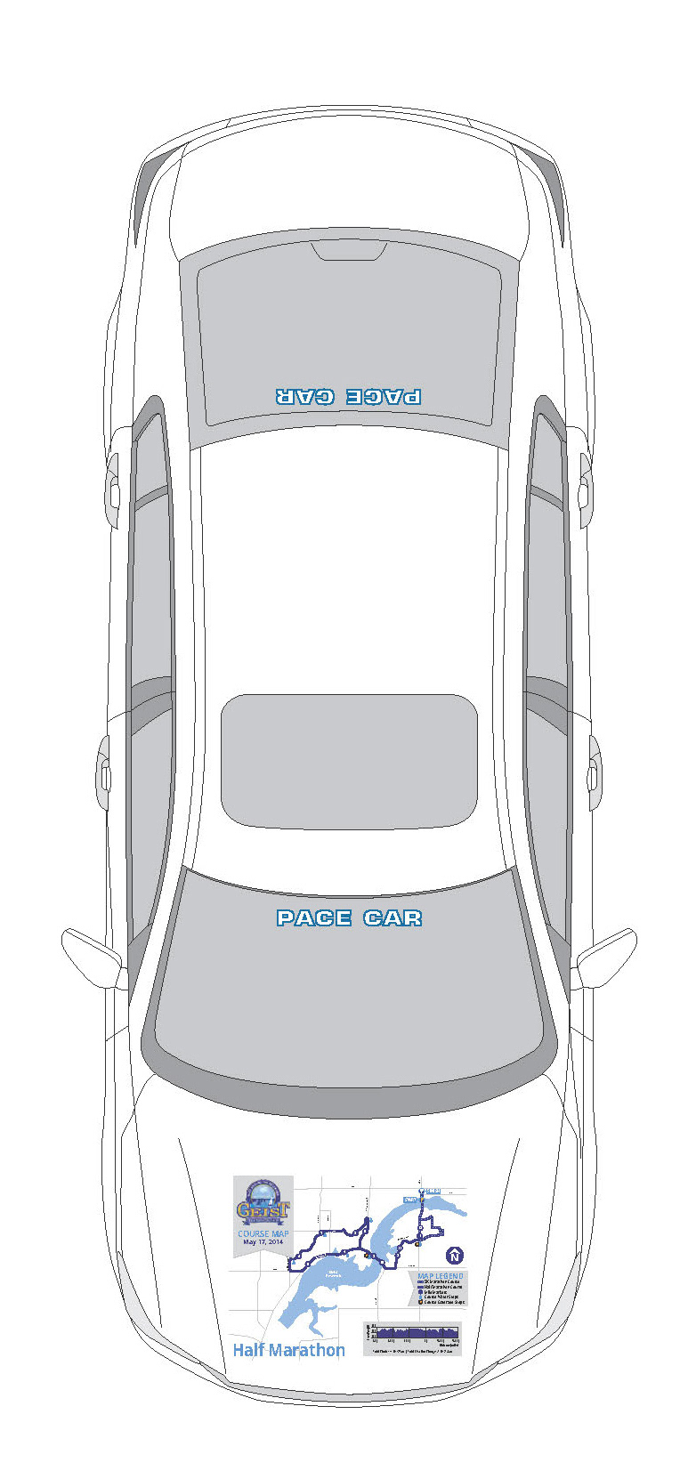 A partial car wrap I created mixing photography and illustration for a pace car that was driven during the 2014 Race Around the Reservoir marathon.