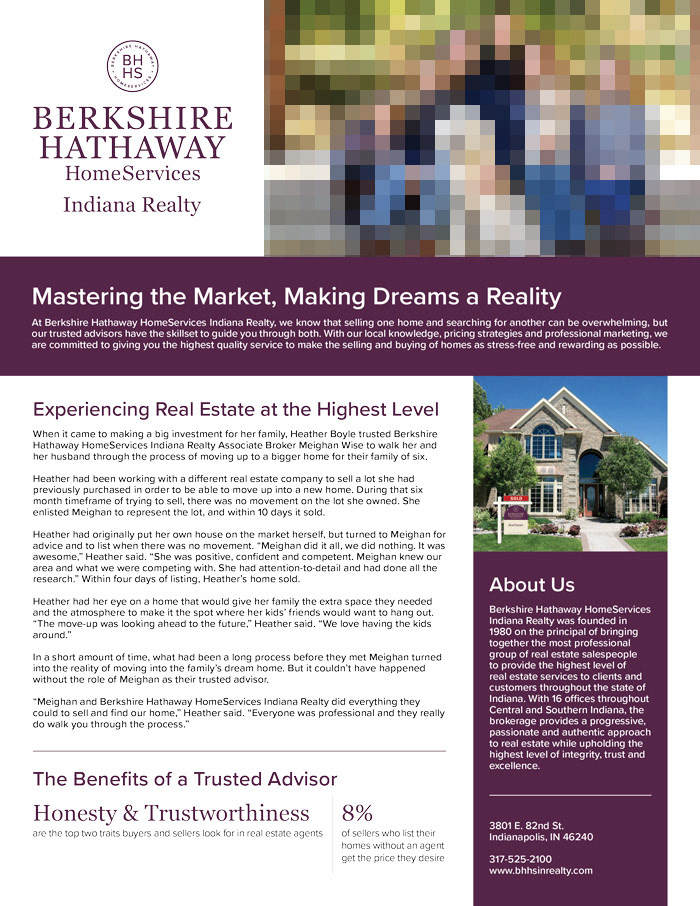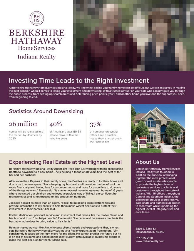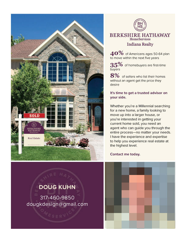 Printed pieces for the realty client I met with. Photos had to be pulled from a promo video and color corrected.